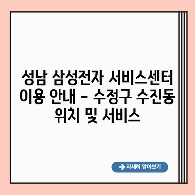 성남 삼성전자 서비스센터 이용 안내 – 수정구 수진동 위치 및 서비스
