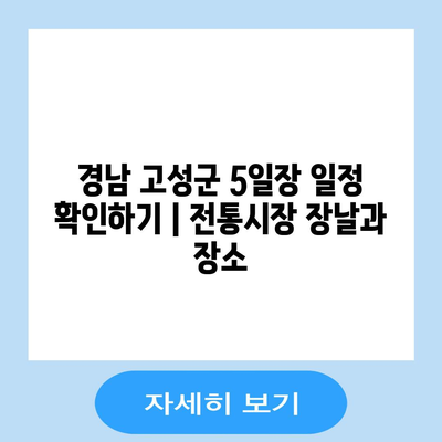 경남 고성군 5일장 일정 확인하기 | 전통시장 장날과 장소