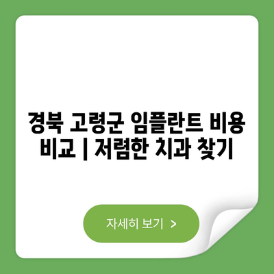 경북 고령군 임플란트 비용 비교 | 저렴한 치과 찾기