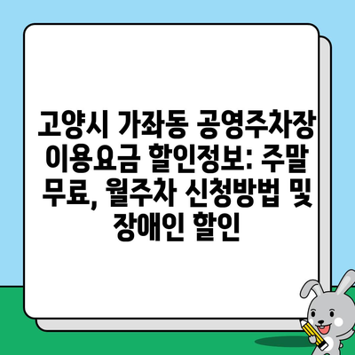 고양시 가좌동 공영주차장 이용요금 할인정보: 주말 무료, 월주차 신청방법 및 장애인 할인