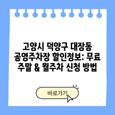 고양시 덕양구 대장동 공영주차장 할인정보: 무료 주말 & 월주차 신청 방법