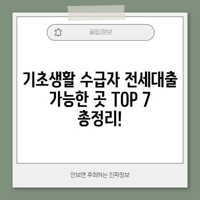 기초생활 수급자 전세대출 가능한 곳 TOP 7 총정리!