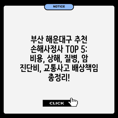 부산 해운대구 추천 손해사정사 TOP 5: 비용, 상해, 질병, 암 진단비, 교통사고 배상책임 총정리!