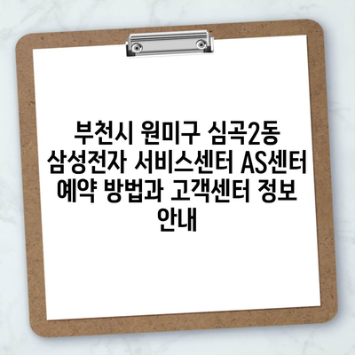 부천시 원미구 심곡2동 삼성전자 서비스센터 AS센터 예약 방법과 고객센터 정보 안내