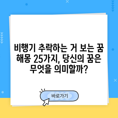 비행기 추락하는 거 보는 꿈 해몽 25가지, 당신의 꿈은 무엇을 의미할까?