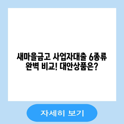 새마을금고 사업자대출 6종류 완벽 비교! 대안상품은?