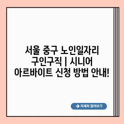 서울 중구 노인일자리 구인구직 | 시니어 아르바이트 신청 방법 안내!