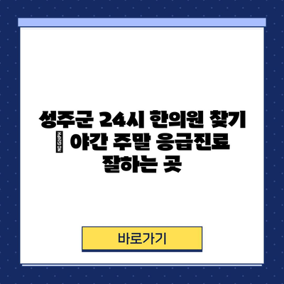 성주군 24시 한의원 찾기 | 야간 주말 응급진료 잘하는 곳