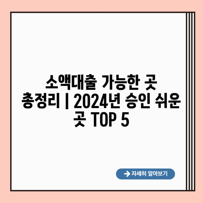 소액대출 가능한 곳 총정리|2024년 승인 쉬운 곳 TOP 5