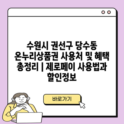 수원시 권선구 당수동 온누리상품권 사용처 및 혜택 총정리 | 제로페이 사용법과 할인정보