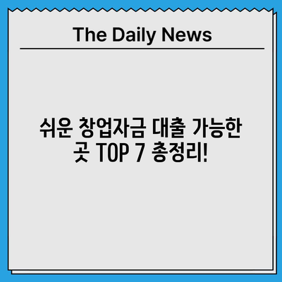 쉬운 창업자금 대출 가능한 곳 TOP 7 총정리!