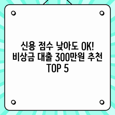신용 점수 낮아도 OK! 비상금 대출 300만원 추천 TOP 5