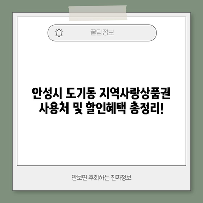 안성시 도기동 지역사랑상품권 사용처 및 할인혜택 총정리!