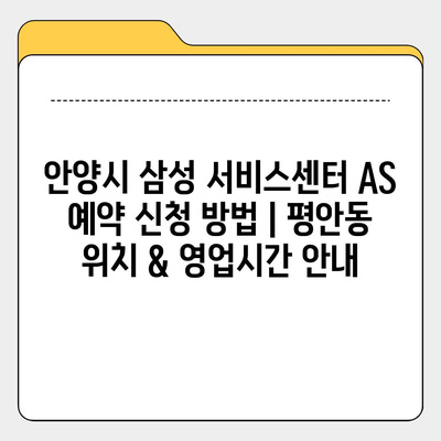 안양시 삼성 서비스센터 AS 예약 신청 방법 | 평안동 위치 & 영업시간 안내