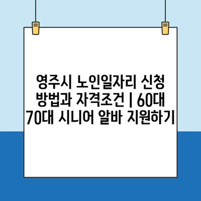 영주시 노인일자리 신청 방법과 자격조건 | 60대 70대 시니어 알바 지원하기