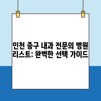 인천 중구 내과 전문의 병원 리스트: 완벽한 선택 가이드