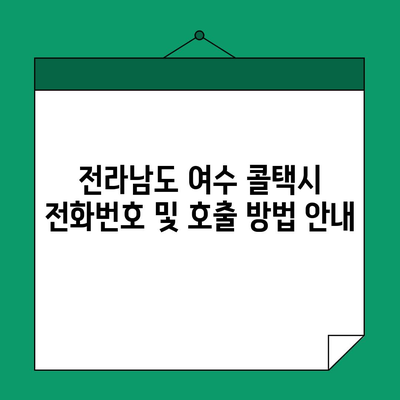 전라남도 여수 콜택시 전화번호 및 호출 방법 안내
