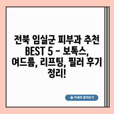 전북 임실군 피부과 추천 BEST 5 – 보톡스, 여드름, 리프팅, 필러 후기 정리!
