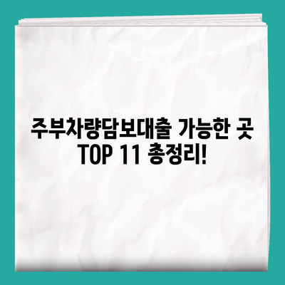 주부차량담보대출 가능한 곳 TOP 11 총정리!