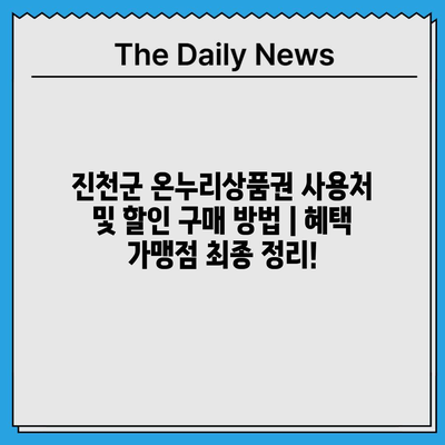 진천군 온누리상품권 사용처 및 할인 구매 방법 | 혜택 가맹점 최종 정리!