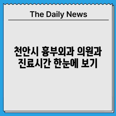 천안시 흉부외과 의원과 진료시간 한눈에 보기