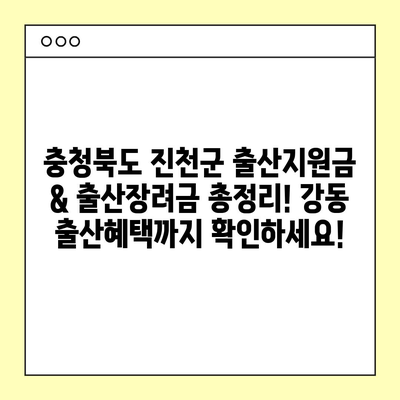 충청북도 진천군 출산지원금 & 출산장려금 총정리! 강동 출산혜택까지 확인하세요!