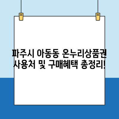 파주시 아동동 온누리상품권 사용처 및 구매혜택 총정리!