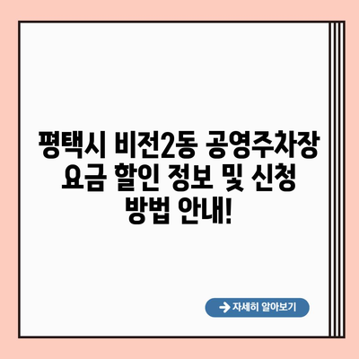 평택시 비전2동 공영주차장 요금 할인 정보 및 신청 방법 안내!