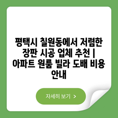 평택시 칠원동에서 저렴한 장판 시공 업체 추천 | 아파트 원룸 빌라 도배 비용 안내