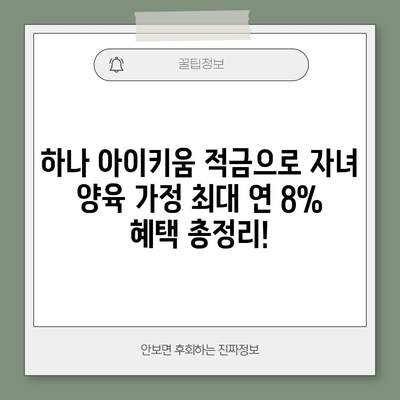 하나 아이키움 적금으로 자녀 양육 가정 최대 연 8% 혜택 총정리!