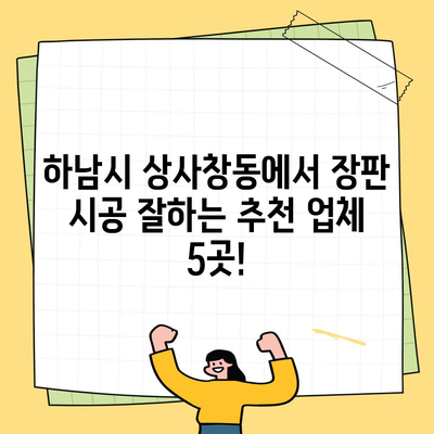 하남시 상사창동에서 장판 시공 잘하는 추천 업체 5곳!