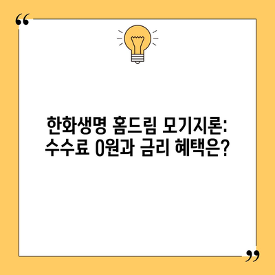 한화생명 홈드림 모기지론: 수수료 0원과 금리 혜택은?