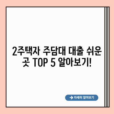 2주택자 주담대 대출 쉬운 곳 TOP 5 알아보기!
