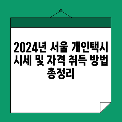 2024년 서울 개인택시 시세 및 자격 취득 방법 총정리