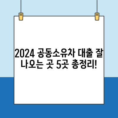 2024 공동소유차 대출 잘 나오는 곳 5곳 총정리!