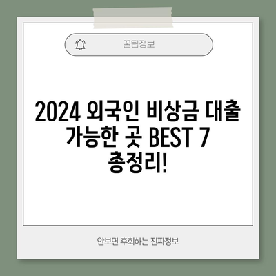 2024 외국인 비상금 대출 가능한 곳 BEST 7 총정리!