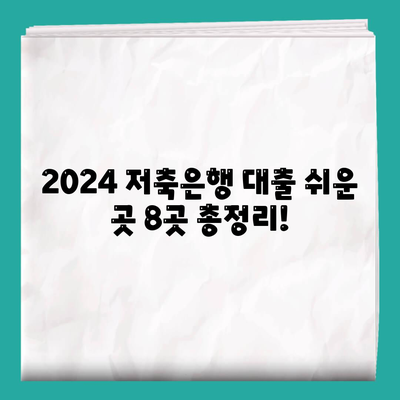 2024 저축은행 대출 쉬운 곳 8곳 총정리!
