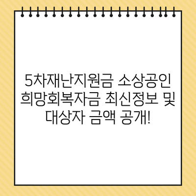 5차재난지원금 소상공인 희망회복자금 최신정보 및 대상자 금액 공개!