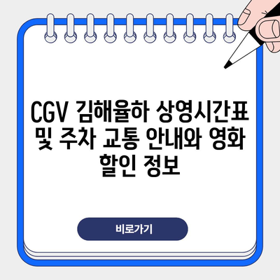 CGV 김해율하 상영시간표 및 주차 교통 안내와 영화 할인 정보